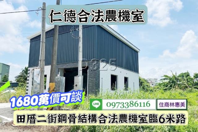仁德區田厝角窗百坪有照農地農機室/售1680萬價可談/林惠美