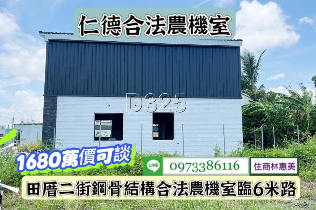 #仁德區田厝角窗百坪有照農地農機室/售1680萬.價可談/林惠美0973386116